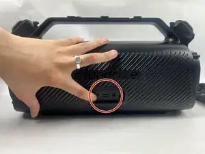 Переверните колонку и надавите на порт зарядки внутрь.