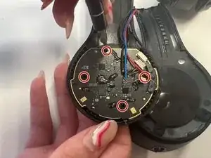 Крышка снаружи наушников упадет, как только будет снят последний винт. Не беспокойтесь, если что-то сломалось. Просто прикрепите ее обратно во время сборки.