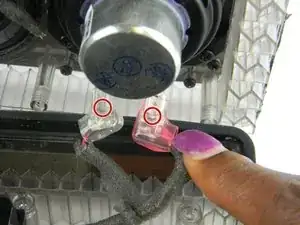 Аккуратно сожмите внутренний фиксатор внутри красного и белого клеммника пальцами или тонкими пинцетами.