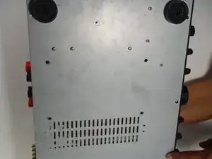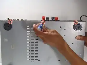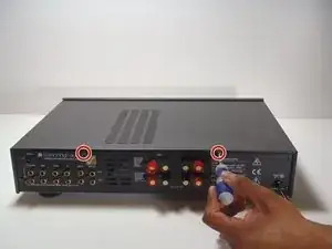 Снимите по 2 винта с каждой стороны усилителя.