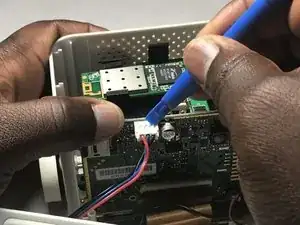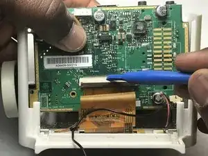 Удалите разъем кнопки Chumby с помощью пластикового инструмента для открытия.
