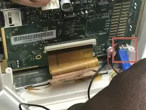 Отключите разъем аккумулятора от материнской платы с помощью пластикового инструмента для открытия.