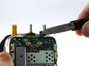 Разъём антенны, регулятор громкости и регулятор каналов прикреплены к материнской плате. Убедитесь, что вы тянете материнскую плату вниз, чтобы они вышли из своих соответствующих отверстий в корпусе.