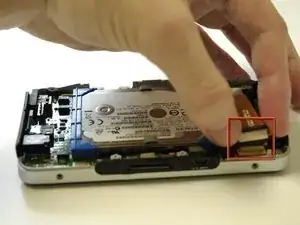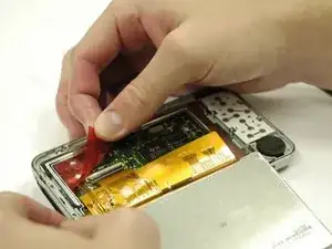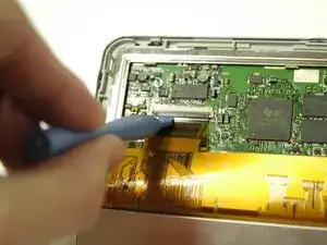 Используйте лопаточку, чтобы сдвинуть две маленькие серые защелки от разъема шлейфа.