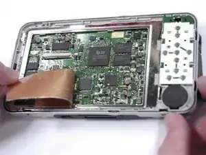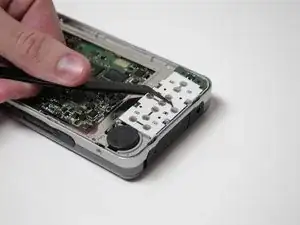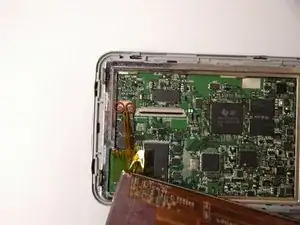 Динамик покрыт черным клеем, и вам потребуется разрезать этот клей, чтобы извлечь материнскую плату.
