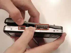 Снимите 2 винта (3,5 мм) на черном разъеме Compact Flash с помощью Phillips #0.