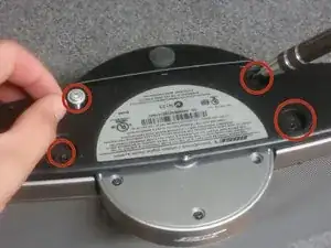Используйте стандартную крестовую отвертку для удаления четырех винтов на нижней части аудиосистемы.