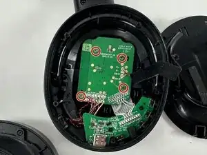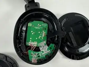 Осторожно извлеките узел динамика из наушников, следя за тем, чтобы не растянуть подключённый провод.