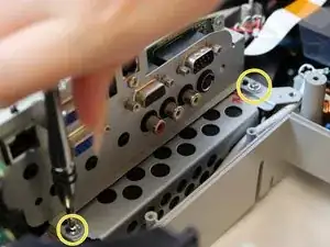 Снимите винт длиной 8,1 мм с задней стороны проекционной панели под материнской платой, используя крестовую отвертку PH2.