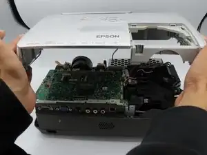 Материнская плата — крупный компонент внутри Epson Powerlite S4. Этот блок расположен в нижнем углу и обеспечивает связь с другими техническими компонентами. Перед началом руководства убедитесь, что проектор выключен, чтобы избежать опасности. Если материнская плата неисправна, устройство, скорее всего, не будет работать.