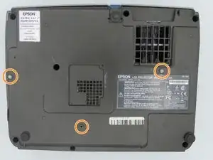 Поверните проектор так, чтобы кнопка питания оказалась сверху.