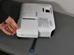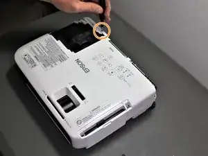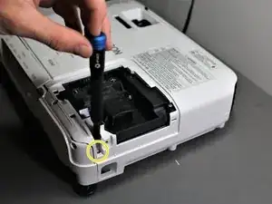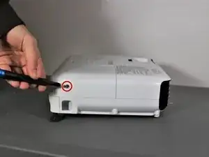 Отверткой Phillips №2 ослабьте единственный фиксированный винт на левой стороне проектора.