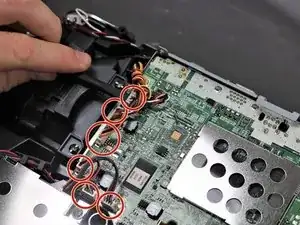 Отверткой Phillips №1 выверните три винта длиной 10 мм на серой детали, расположенной на стороне материнской платы.