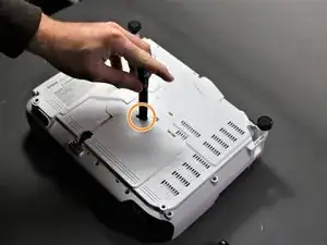 Отверткой Phillips №1 выверните два серебристых винта длиной 10 мм с нижней части устройства.