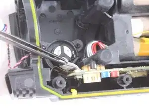 Под материнской платой подсоединён небольшой коаксиальный кабель. Пинцетом аккуратно отключите и удалите кабель из-под клейкой ленты.