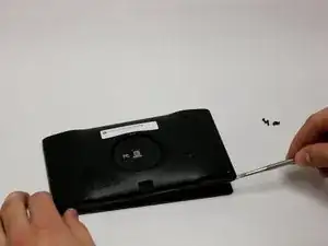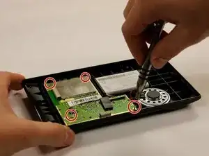 Используя отвертку Torx T4, выкрутите все четыре винта (1/4 дюйма, 6,35 мм) с задней панели устройства.