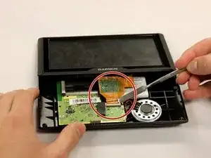 Затем аккуратно отсоедините двумя пальцами два комплекта проводов, подключённых к аккумулятору и динамику.