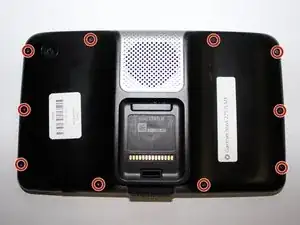 С помощью отвертки Torx T-6 открутите десять винтов Torx T-6 размером 2,38 мм с задней стороны вашего GPS.
