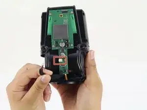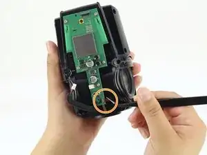 Отключите оранжевый соединительный кабель, который соединяет нижнюю часть устройства с материнской платой, потянув прямо за оранжевую вкладку.