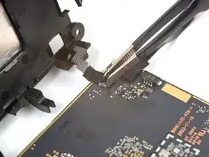 Используйте кончик лопатки, чтобы поднять фиксирующую заслонку на разъёме ZIF кабеля датчика движения.