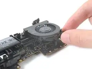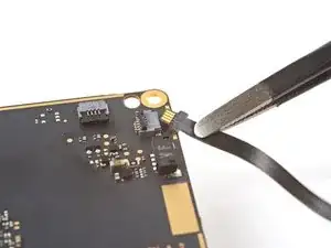Используйте пинцет, чтобы извлечь кабель датчика движения из его паза на материнской плате.