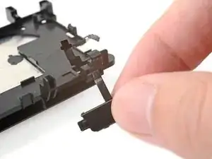 Используйте кончик лопатки, чтобы поднять фиксирующую заслонку на разъёме ZIF кабеля кнопки громкости.