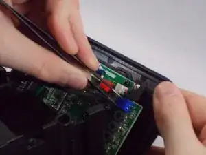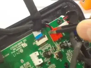 С помощью пинцета отключите белый, красный и синий разъёмы от материнской платы, вытянув каждый из них.