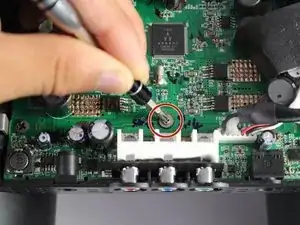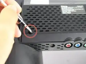 Открутите серый винт Phillips #1 диаметром 6,0 мм, расположенный непосредственно над красными, синими и зелеными портами компонентов.