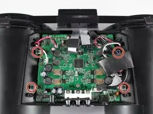 Снимите четыре винта Phillips #2 длиной 9,5 мм, расположенные на каждом из четырех углов задней крышки iHome.