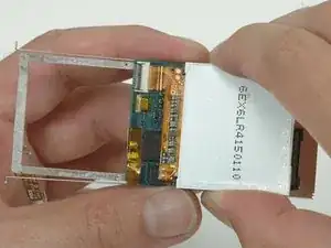 Используйте металлическую лопатку, чтобы аккуратно отсоединить металлический кронштейн от задней части дисплея. Убедитесь, что отделяете только кронштейн, а не прозрачный экран с задней стороны дисплея. Работая изнутри дисплея, вы не сможете случайно отогнуть прозрачную пластиковую защиту.