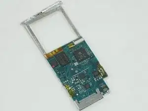 Используйте лопатку, чтобы протолкнуть материнскую плату через корпус iPod наружу. Колесо прокрутки и разъём для наушников должны остаться в iPod.