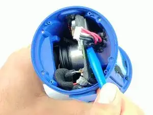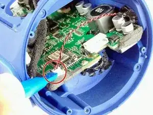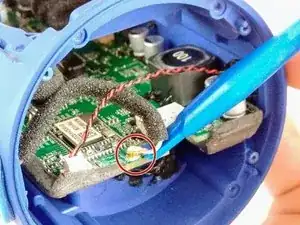 Соскоблите герметик с проводов батареи пластиковым инструментом и убедитесь, что он не мешает корпусу колонки и проводам.