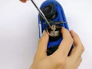 Отключите проводку от динамика с помощью тонкого поддевателя.