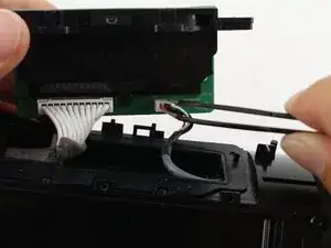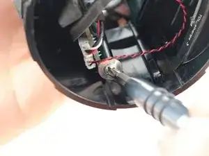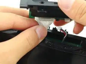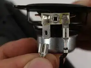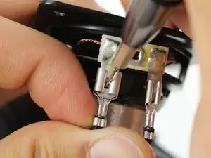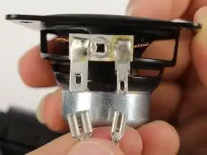Нажмите маленькую металлическую защёлку на разъёме динамика отвёрткой Phillips #000 и аккуратно разъедините разъём.