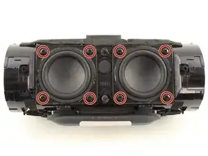 Удалите восемь винтов Phillips #1 длиной 10 мм вокруг двух передних динамиков.