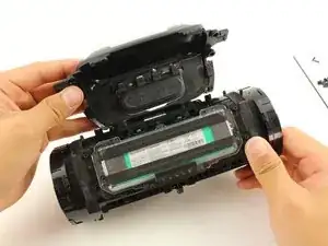 Отделите внешнюю крышку аккумулятора от корпуса колонки.