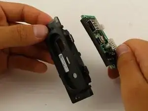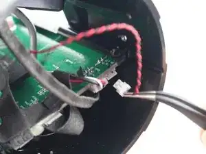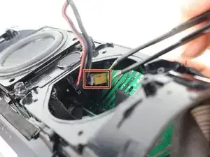 Осторожно отсоедините собранный кабельный разъём в боковой части колонки. Это действие отделит аккумулятор от материнской платы.
