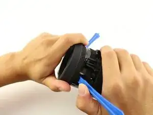 Медленно вытяните пластиковый инструмент наружу, чтобы снять четыре защёлки, удерживающие крышку.