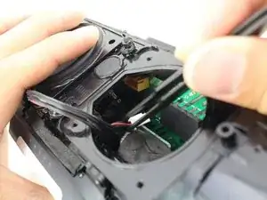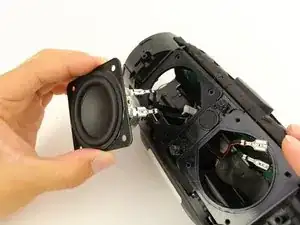 Осторожно потяните один из динамиков, чтобы вынести его из корпуса. Будьте внимательны — он всё ещё подключён проводами к материнской плате.