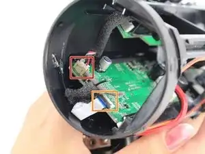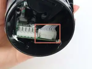 Нажмите на белую защёлку и аккуратно выньте разъём аккумулятор‑устройство.