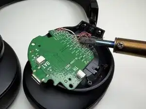Аккумулятор находится в левом чашке наушника. Все шаги этого руководства должны выполняться на левом наушнике.