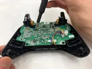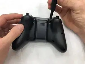 Используйте отвертку треугольной формы #2, чтобы удалить шесть винтов по 10 мм с задней стороны контроллера.