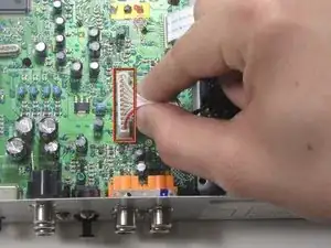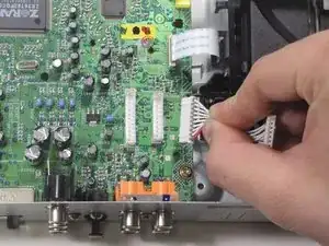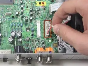 Это руководство содержит инструкции по снятию левой материнской платы (зелёной) плеера Toshiba SD-K740, которая управляет дисплеем и работой дисковода.