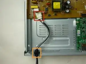 Снимите провод питания с панели, аккуратно сдвинув его вверх из посадочного места.