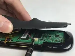 Возьмите пластиковый инструмент для открытия и проведите им по боковой стороне пульта, чтобы открыть корпус.