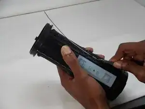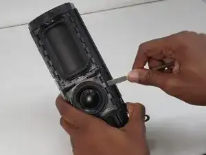 Поместите синие пластиковые лопатки для вскрытия в зазор между колонкой и основанием, чтобы использовать их в качестве рычага при открытии корпуса.