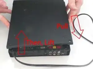 Снимите верхнюю панель с устройства, потянув, затем подняв её вверх.