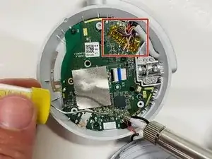 Используйте крестовую отвертку #00, чтобы удалить три винта длиной 2.6 мм, крепящие корпус правого динамика к шасси.