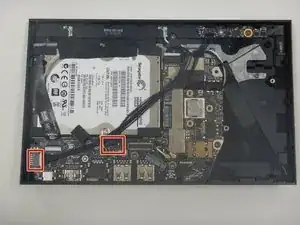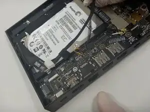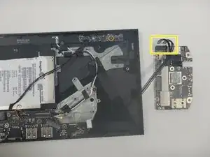 Поднимите материнскую плату из устройства и отключите черный кабельный пучок.