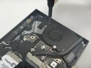 Используйте отвертку Torx TR6, чтобы удалить пять винтов длиной 6 мм, крепящих вентилятор.